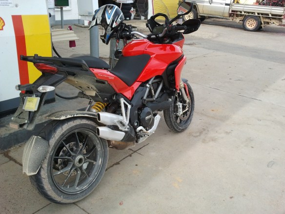 The multi-purpose tyres handled the terrain beautifully! Since I took the long route (over 1,000 kms lay ahead) I had to go fast as I only had a day registration and no rego. plates, officer…I also had to test the range of the 20lt fuel tank…over 300kms with less than a litre left…